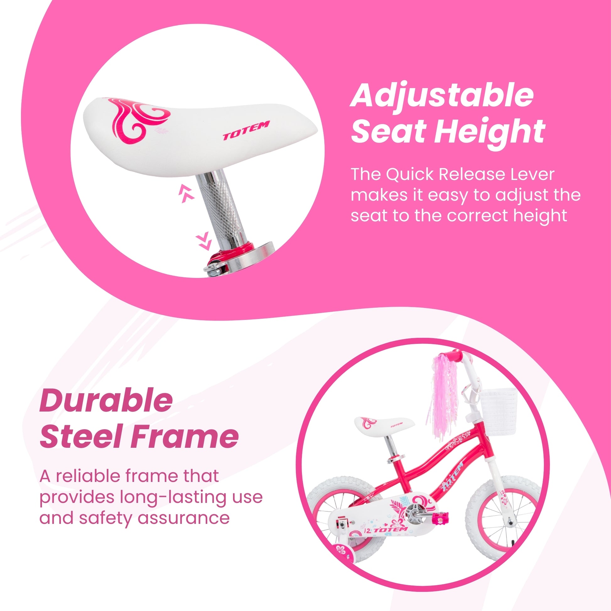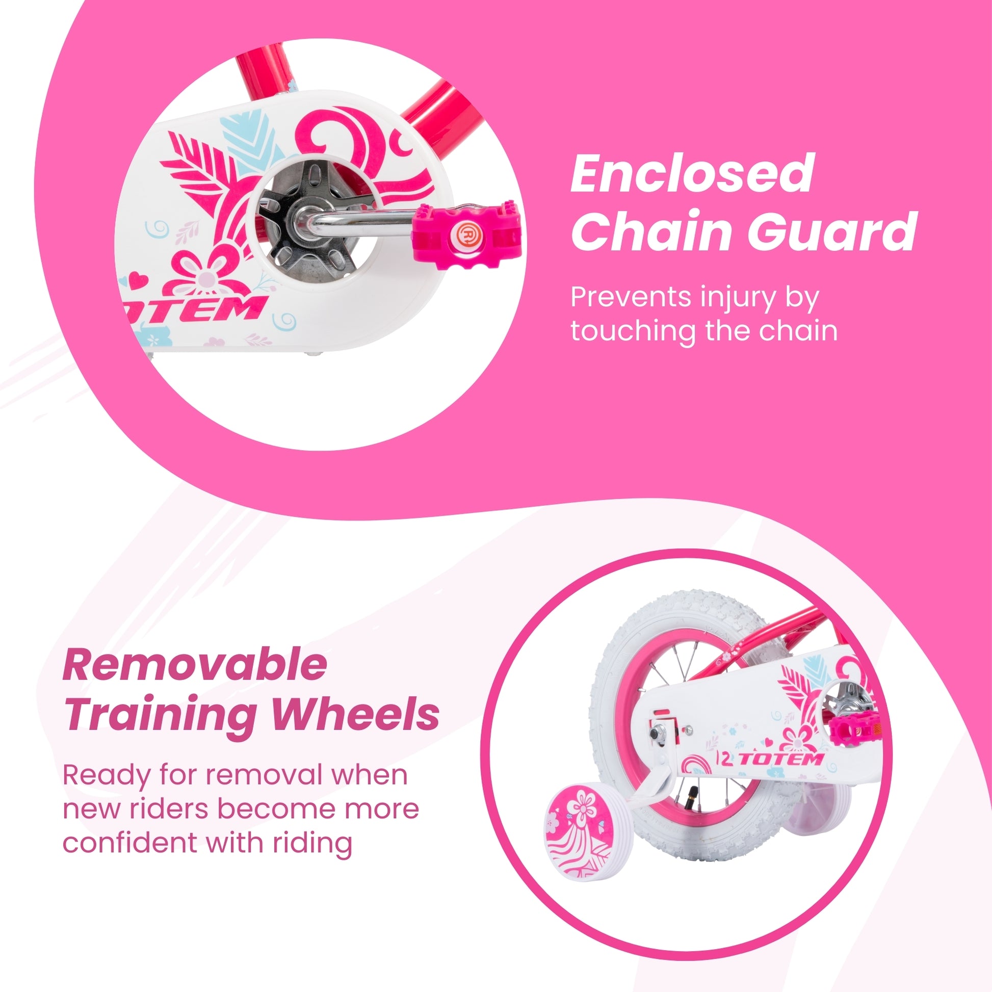 This 12” BMX has an adorable look with great features and sparkly streamers that glisten in the wind as she rides. Ideal for ages 2-5 years old. Remember to ALWAYS wear a helmet.