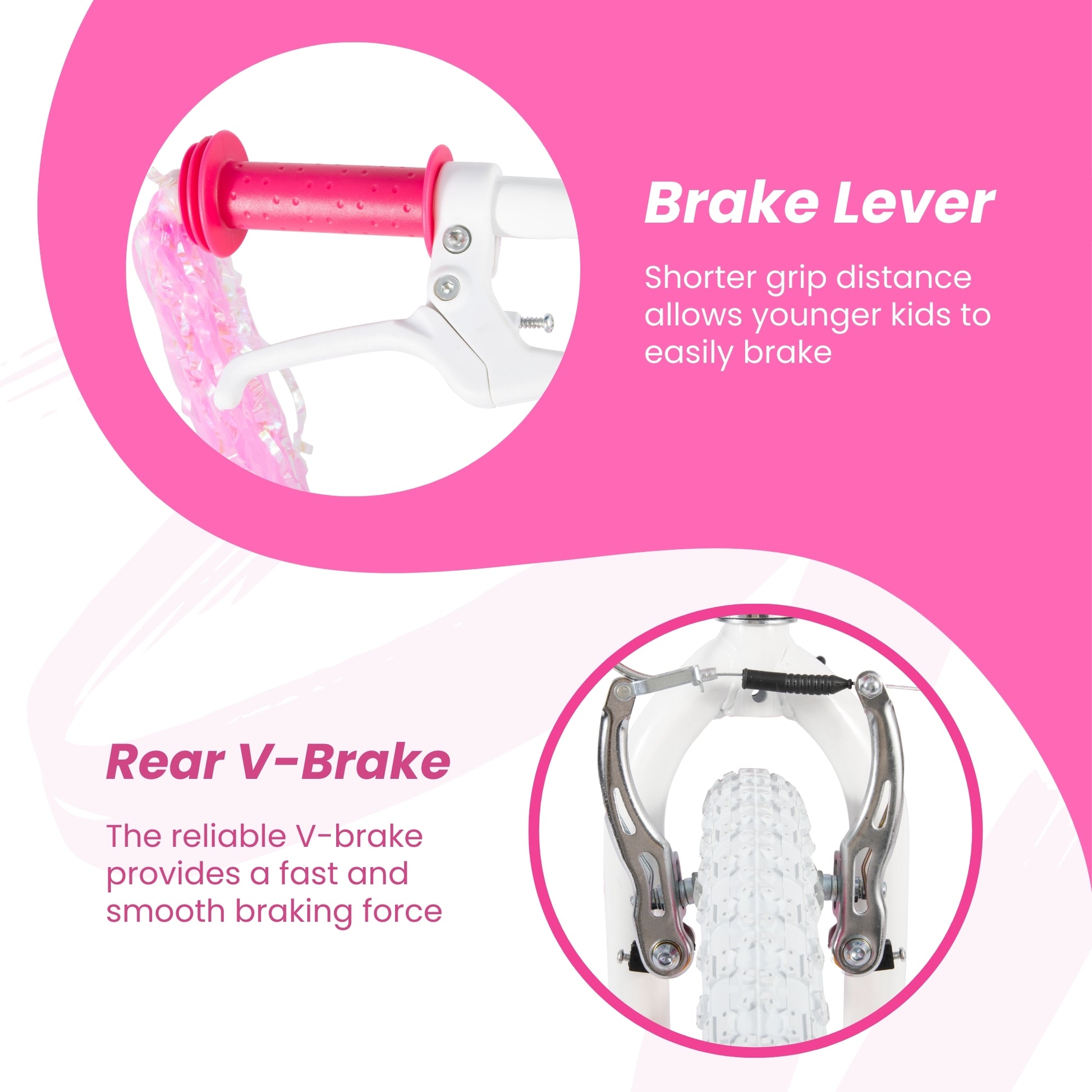 This 20” BMX has an adorable look with great features and sparkly streamers that glisten in the wind as she rides. Ideal for ages 8-11 years old. Remember to ALWAYS wear a helmet.